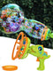 - [Easy to Use Bubble Machine]To use this bubble gun, simply pop in 2 AA batteries, immerse bubble wand to the dish which is filled with solution and press the pistol to create bunches of colorful bubbles.